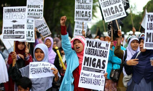 Massa dari Hizbut Tahrir Indonesia, menggelar demo di Gladak Solo, Sabtu (31/3/2012). foto: solopos.com MUSTANIR.COM,