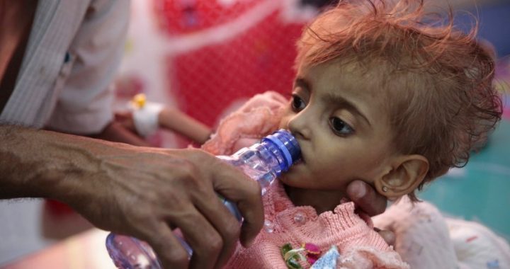 Seorang anak diberi minumn di sebuah RS di Hodeida, Yaman. Foto: rol MUSTANIR.COM, Jakarta –