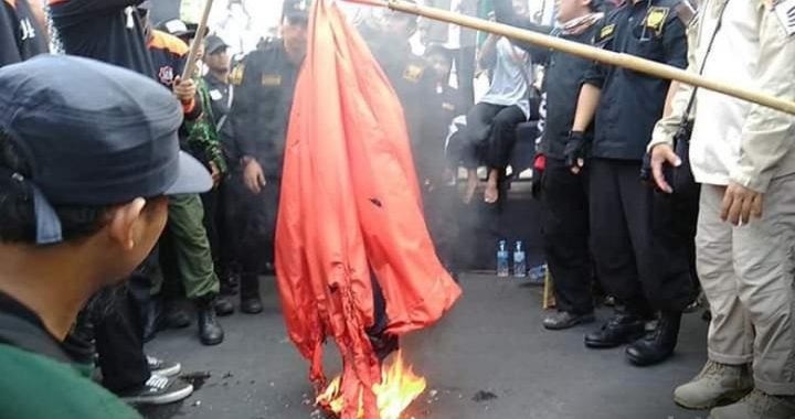 Peserta Parade Tauhid Solo membakar bendera palu arit. Foto: detik MUSTANIR.COM, Solo – Ribuan orang