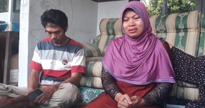 Baiq Nuril (40) dan suami, Lalu Muhammad Isnaeni (40), di rumahnya, di Perumahan BHP Telagawaru,