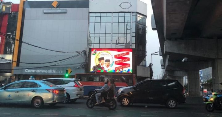 Videotron Jokowi-Ma’ruf yang diduga langgar kampanye. (Foto: kumparan) MUSTANIR.COM, Jakarta – Bawaslu DKI akhirnya menggelar