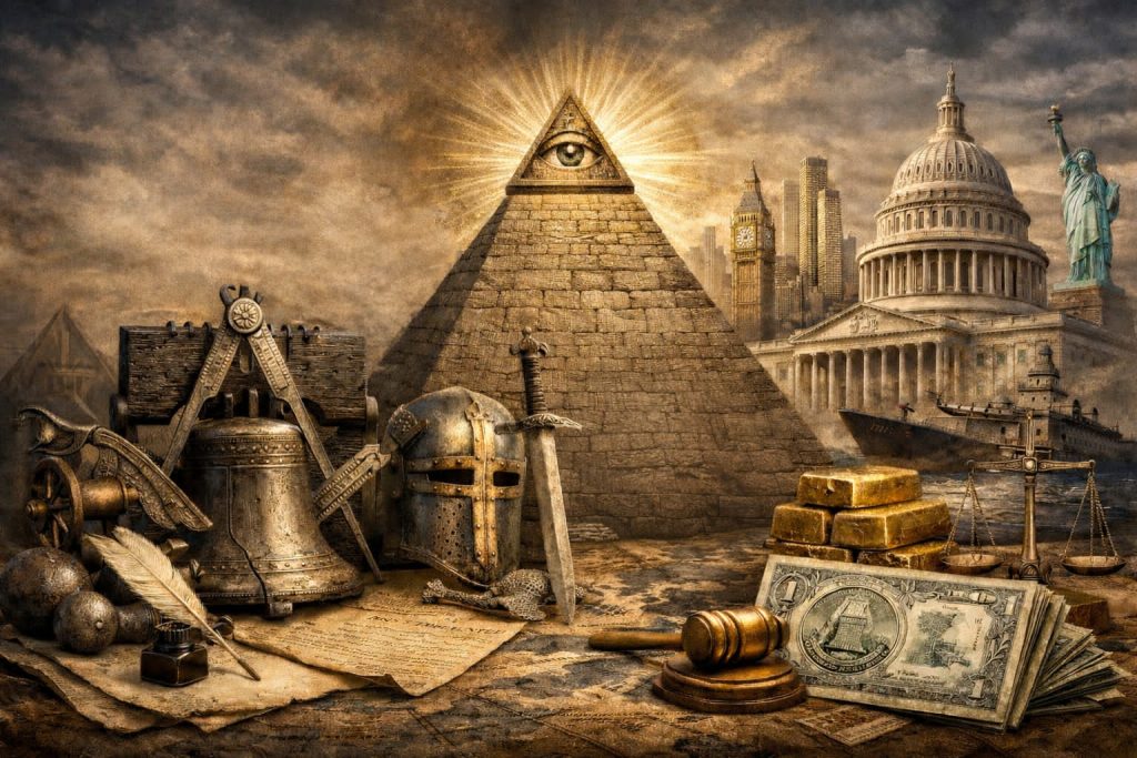 Freemasonry berakar dari Ksatria Templar yang menangguk untung pasca Perang Salib abad ke-14. Diburu di Eropa, mereka melarikan diri ke Skotlandia, mengidentifikasi diri sebagai “Mason” (tukang batu) dengan cita-cita membangun kuil di Bukit Zion. Gerakan ini bertujuan membebaskan manusia dari dogma agama. Mereka membentuk Grand Lodge di Inggris, lalu bersama bankir Yahudi di City of London, memicu kapitalisme global via East India Company. Hubungan AS dan Israel terlihat dari pengakuan cepat Israel oleh Presiden AS Harry S Truman, seorang Mason.